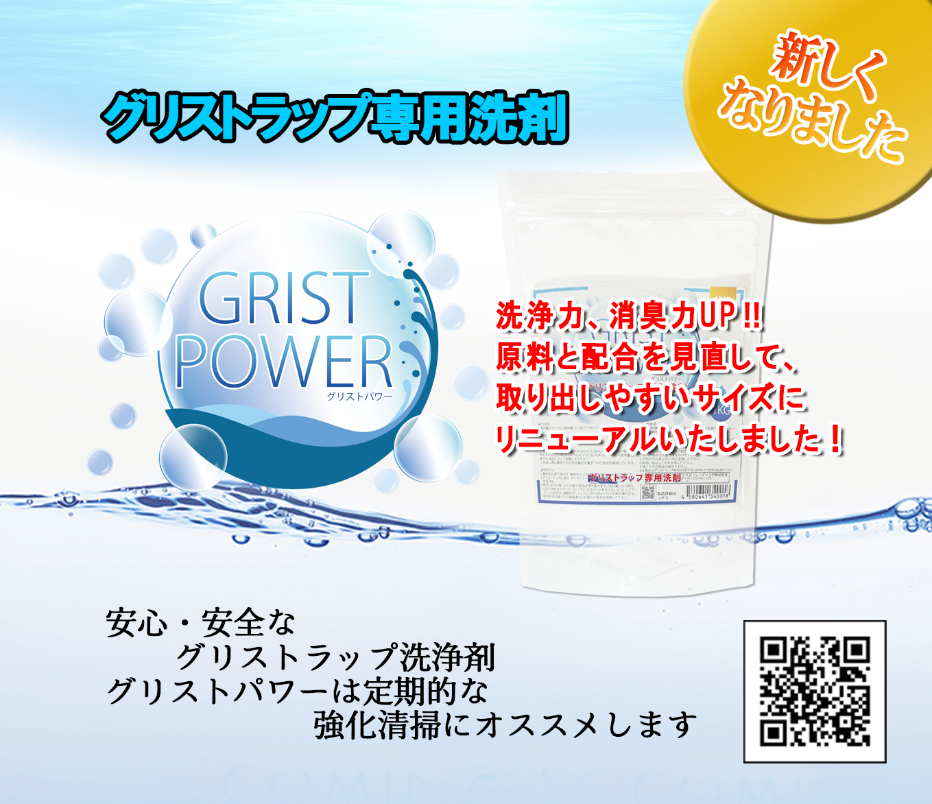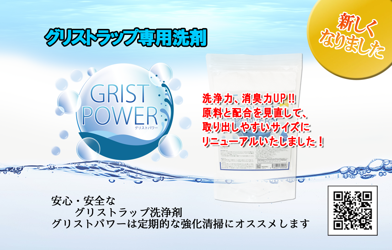 既存の他社製品の殆どが塩素や強アルカリ、酵素やバイオ系の成分を使用しております。当社グリストパワーは既存品にはなかった酸素系の成分を使用しているところが大きな違いです。